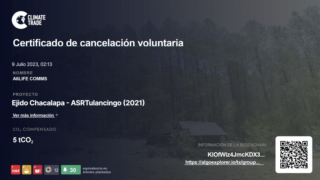 Ante la crisis climática, en A6 LIFE decidimos pasar a la acción tomando acciones que compensan nuestra huella de carbono.